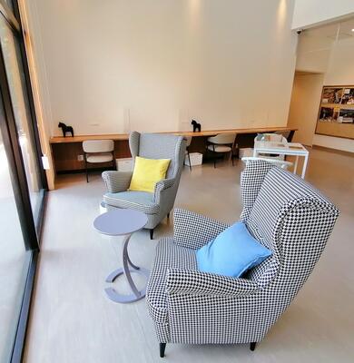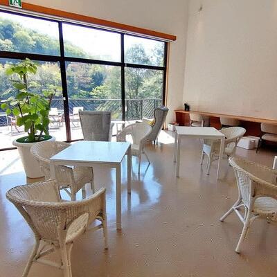 滝を眺めながらくつろげる開放的な空間となっています。