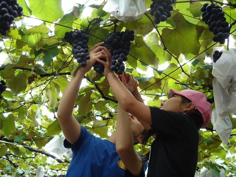 巨峰やピオーネなど、さまざまな品種のブドウが楽しめます。