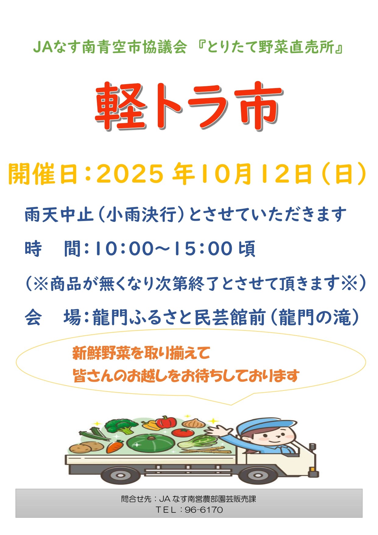 【終了】≪10月12日開催≫とりたて野菜直売所JA軽トラ市